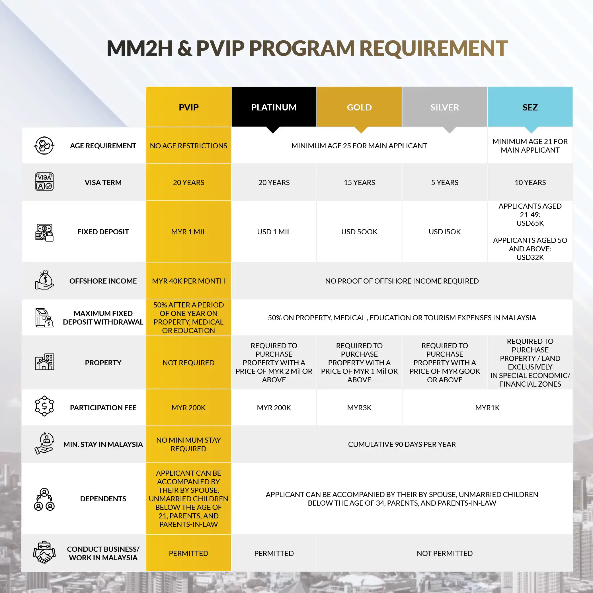 PVIP allows approved holders to work, establish businesses, invest, and study in Malaysia, making it particularly attractive for individuals who require flexibility and long-term certainty.